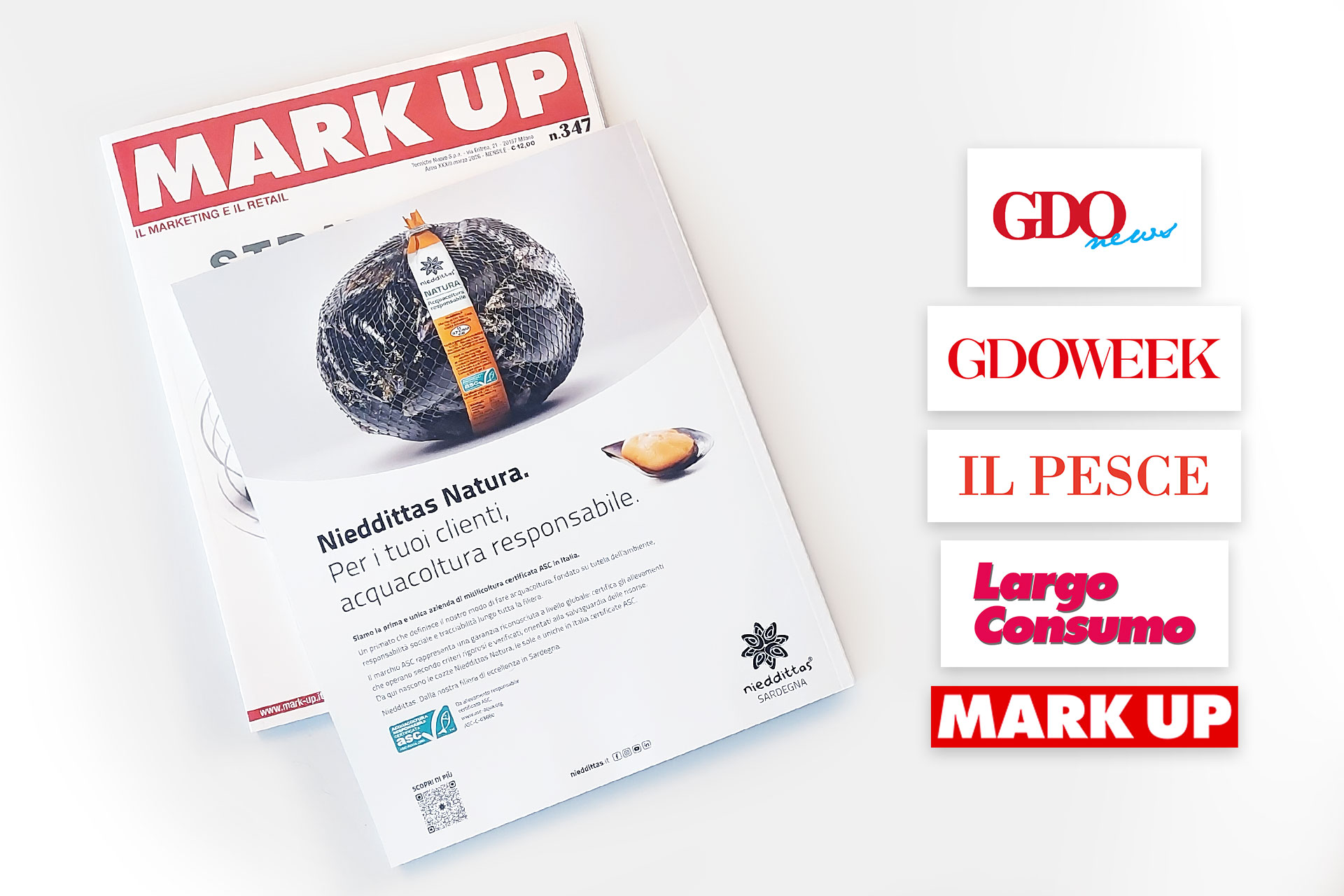 Nieddittas lancia a marzo una campagna sulle principali testate di settore – GDONews, MARKUP, GDOWeek, Largo Consumo e Il Pesce – per presentare le cozze Nieddittas Natura, la nuova linea che risponde alla crescente richiesta del mercato di prodotti ittici tracciabili e allevati secondo pratiche di acquacoltura responsabile.